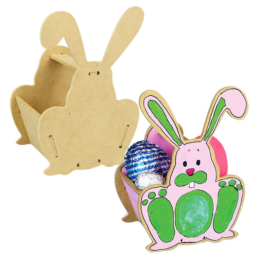 Australian made wooden bunny baskets. Supplied flat-packed for easy self-assembly and plain for you to create. Each basket measures 10 x 7.5 x 14.5cm when assembled. 3mm wood.