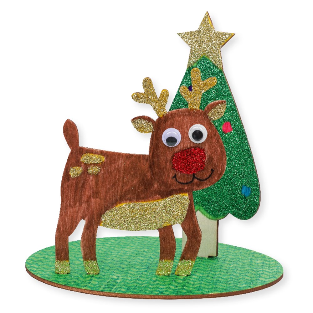 Wooden Christmas reindeer dioramas supplied flat-packed for easy self-assembly and plain for you to create. Each diorama measures 15 x 11.5 x 15cm when assembled. 3mm plywood.