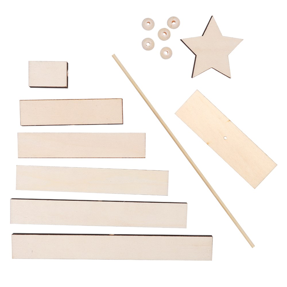 Supplied flat-packed for easy self-assembly and plain for you to create. Decorate with markers, glitter or paint (sold separately). Tree measures 16 x 3 x 23cm when assembled. 7mm plywood pieces.