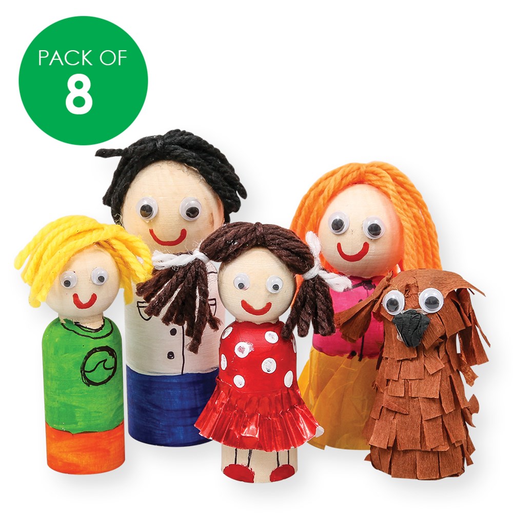Wooden people in assorted sizes.