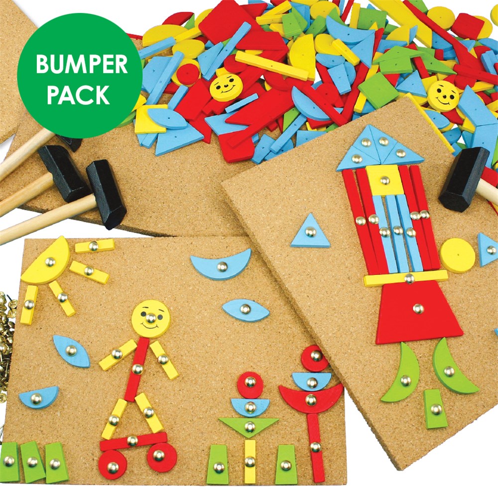 Great Tap Tap fun. Build your own artwork using wooden shapes, a hammer, tacks and a corkboard! You can create a masterpiece again and again. Corkboard measures 21.5 x 15.5 x 0.9cm. For 4 years plus.