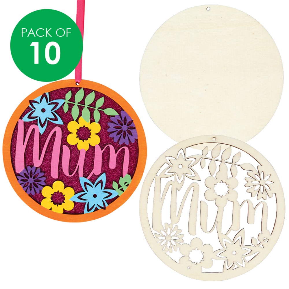 These wooden shapes are perfect to use as a gift tag or decoration for a present for Mother's Day, or you can also create a hanging ornament for Mum to display!