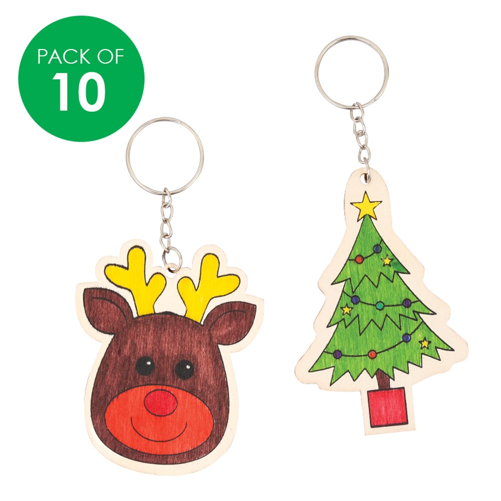 Plain for you to create. Supplied pre-assembled in 2 assorted pre-printed designs. Decorate with coloured markers, glitter or paint. Christmas Tree design measures approximately 5.5 x 8.5cm (excluding keyring). Made with 2mm plywood pieces.