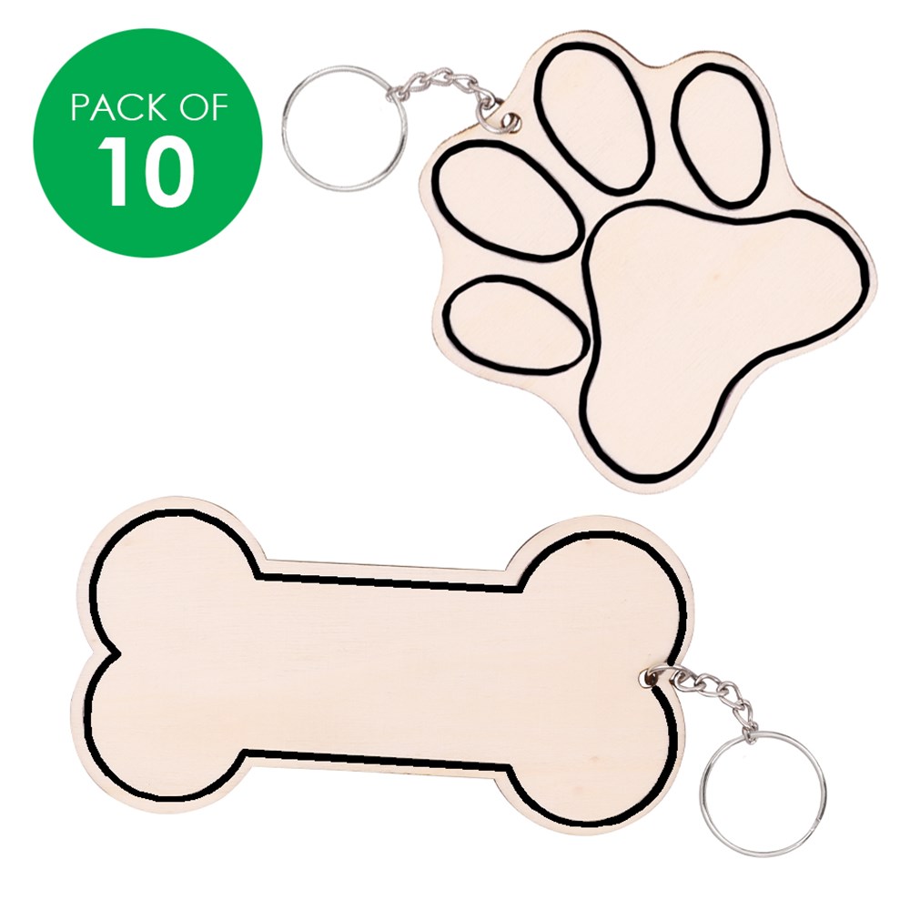 Each pack includes 2 assorted designs supplied plain for you to create. Bone design measures 5.8 x 11cm (excluding keyring). 2mm plywood pieces.