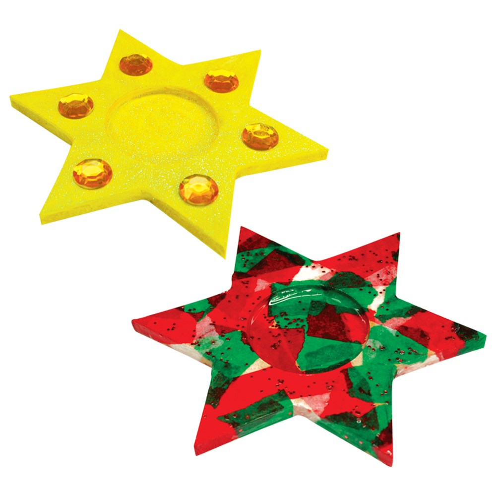 Australian made wooden star candle holders. Plain for you to create. Each candle holder measures 12.5cm in diameter. 6mm wood. Candles sold separately. Adult supervision recommended when burning candles.