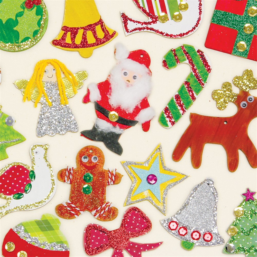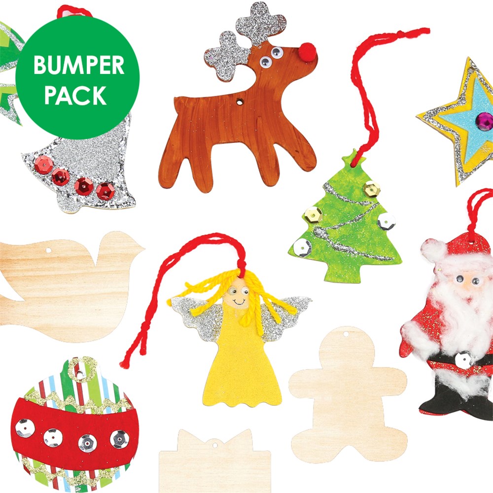 Our Wooden Christmas Shapes Bumper Pack contains 240 wooden Christmas shapes for you to decorate. A range of materials can be used to decorate the shapes including paint, stickers, sequins and collage materials.