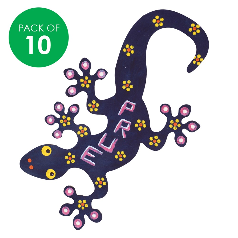 Can also be used as large lizard shape. Designed by Indigenous Artist Kerri-Ann Taggart. Supplied plain for you to create. Each lizard shape measures 16 x 27cm. 3mm plywood.